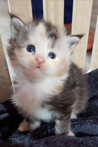 Séraphine est une Maine Coon majestueuse avec sa robe gracieuse et sa petite frimousse adorable. Elle est très bavarde mais reste, le plus souvent très calme.